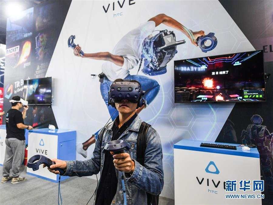 11月6日,參觀者在博覽會(huì)現(xiàn)場(chǎng)體驗(yàn)虛擬現(xiàn)實(shí)技術(shù)。